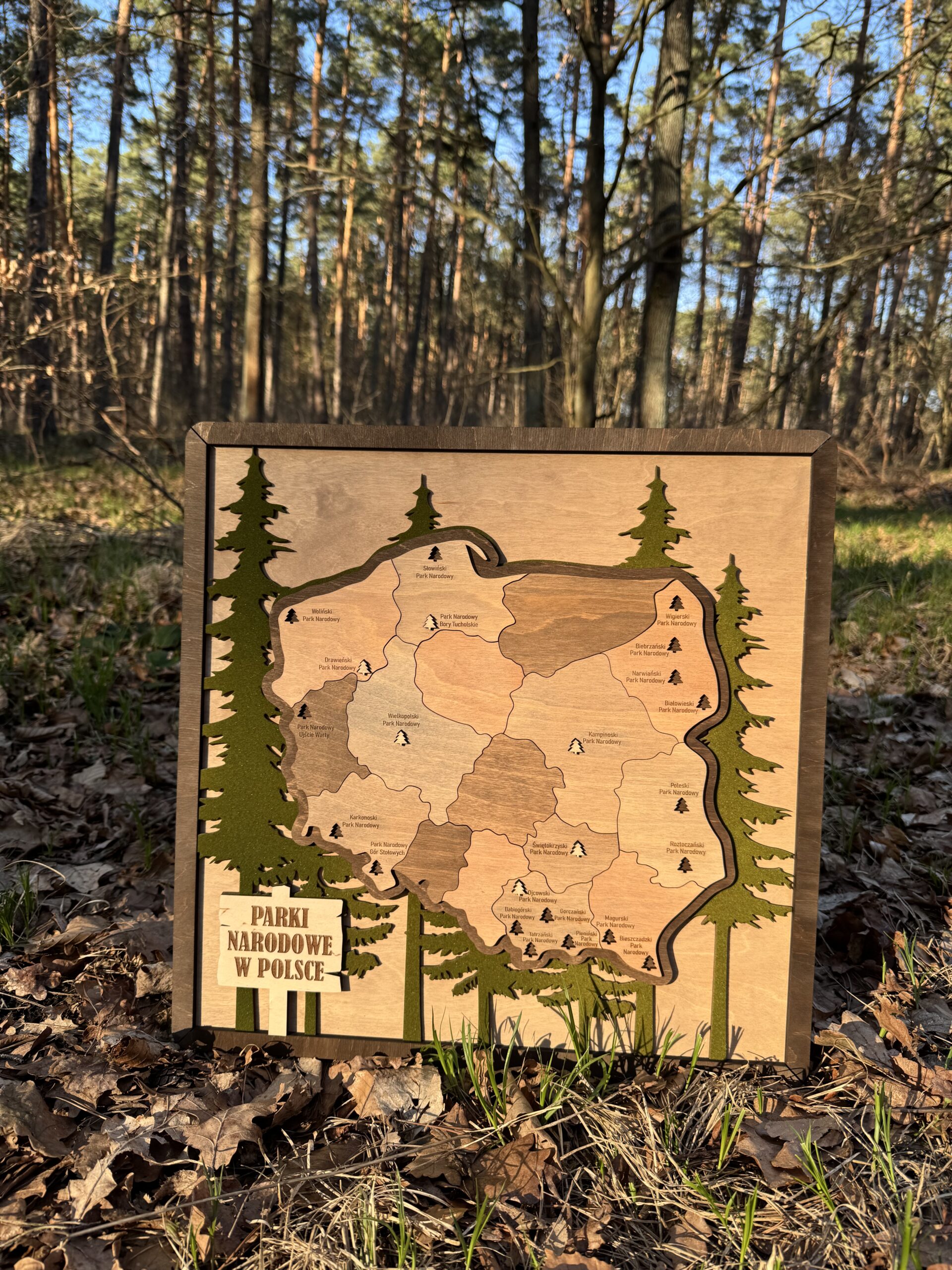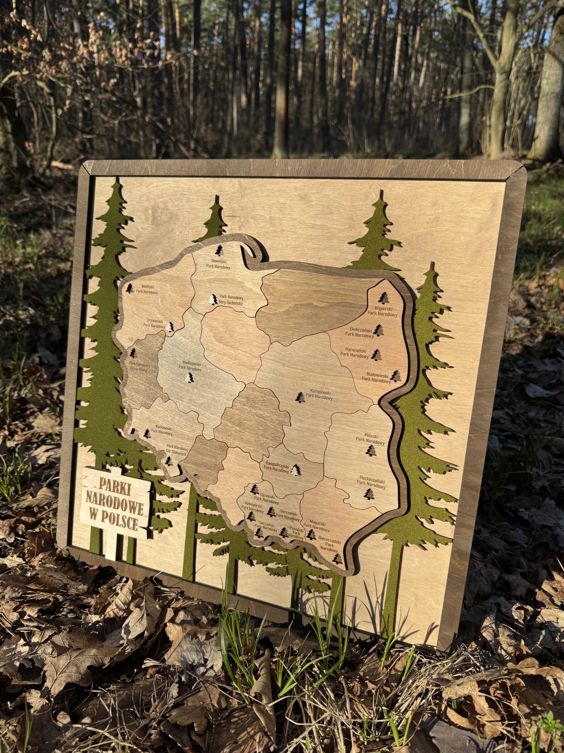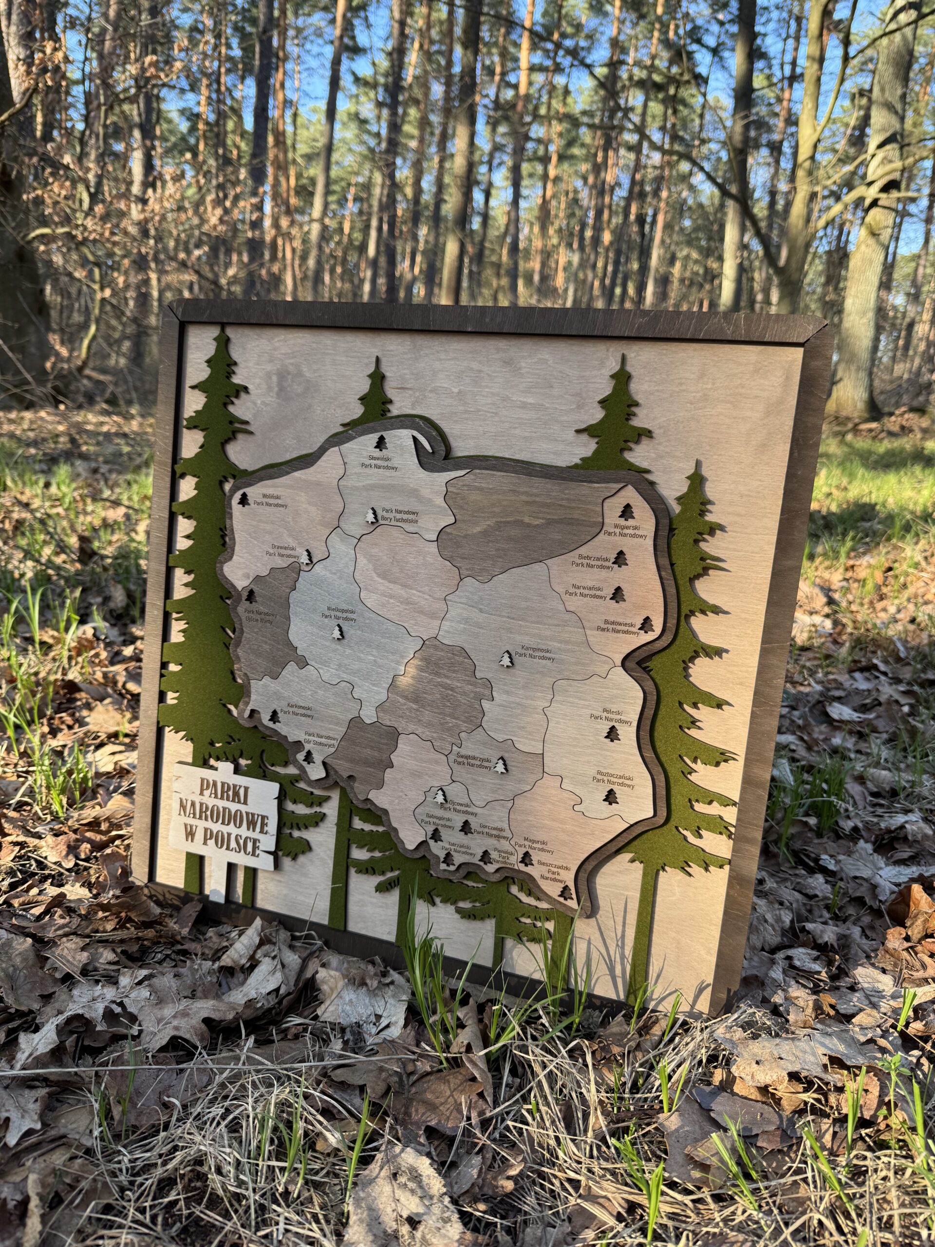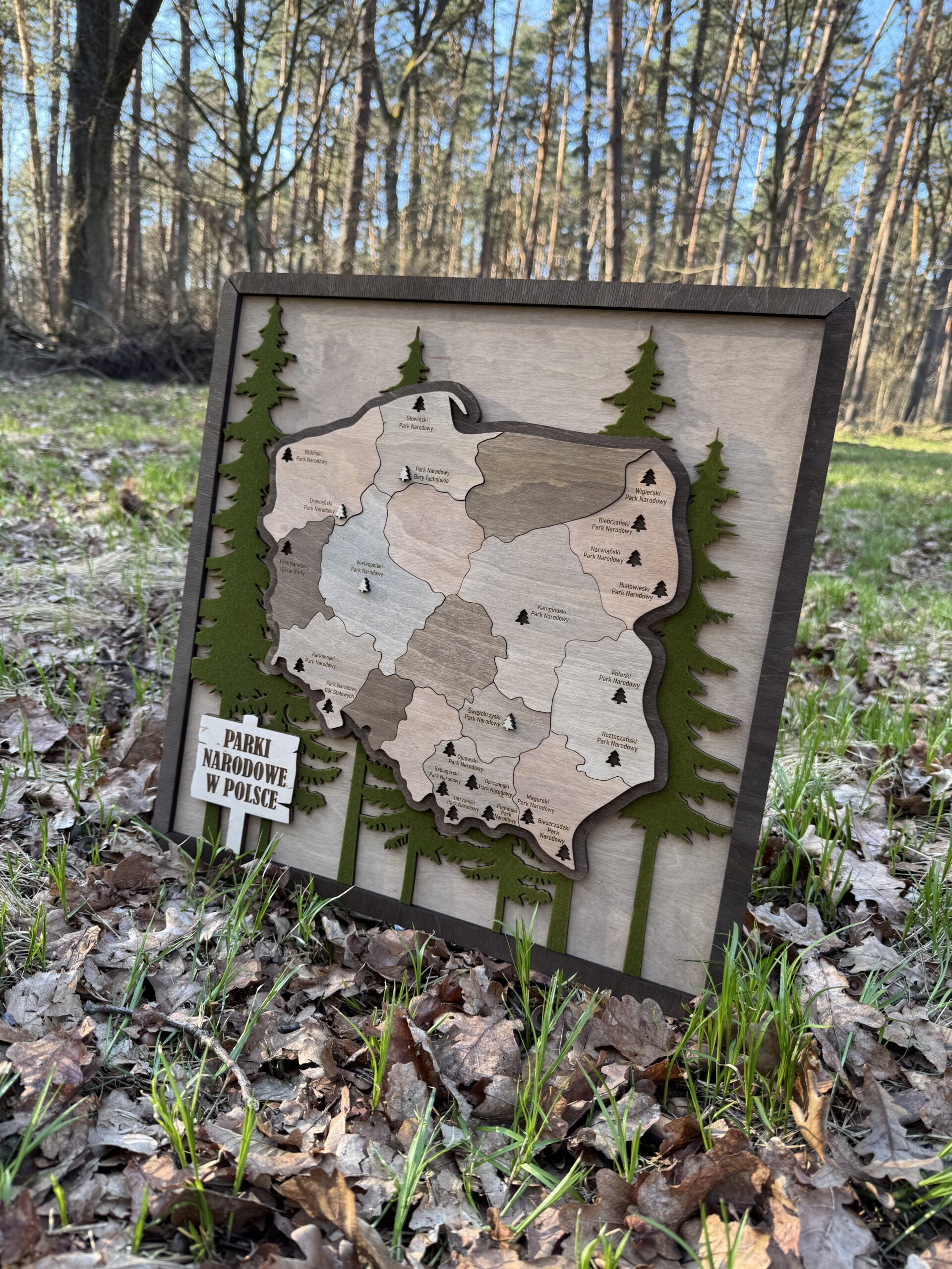 Drewniana Mapa Parków Narodowych w Polsce – Elegancka Dekoracja dla Miłośników Podróży!