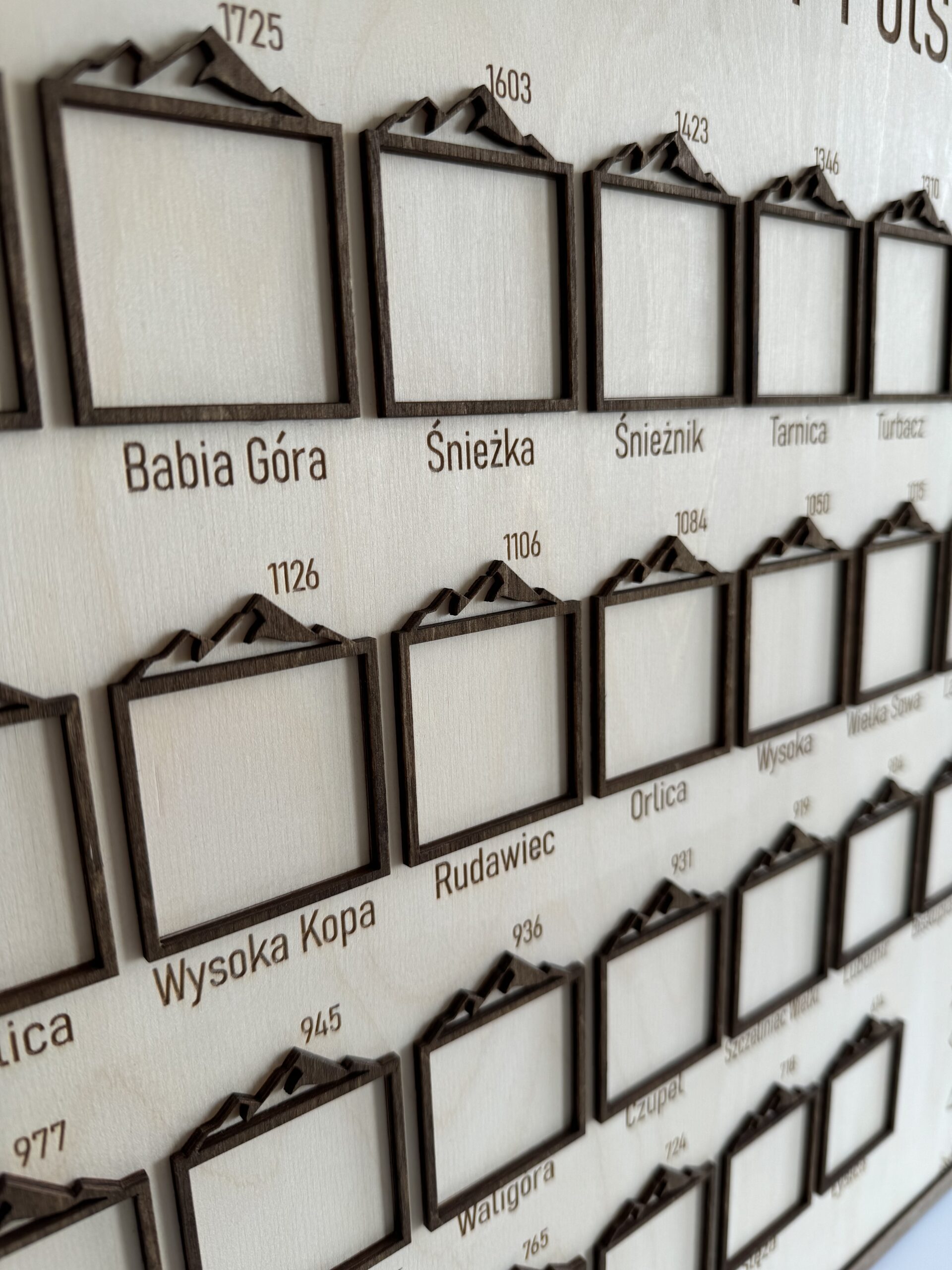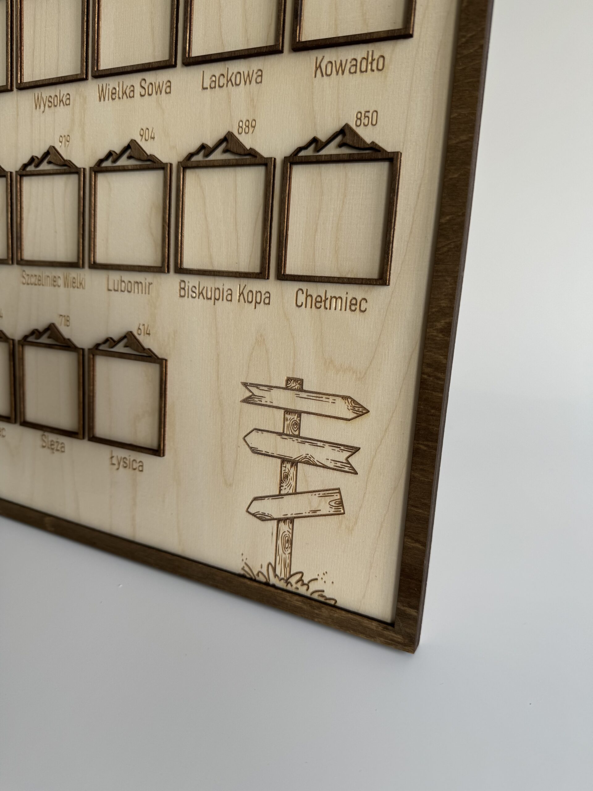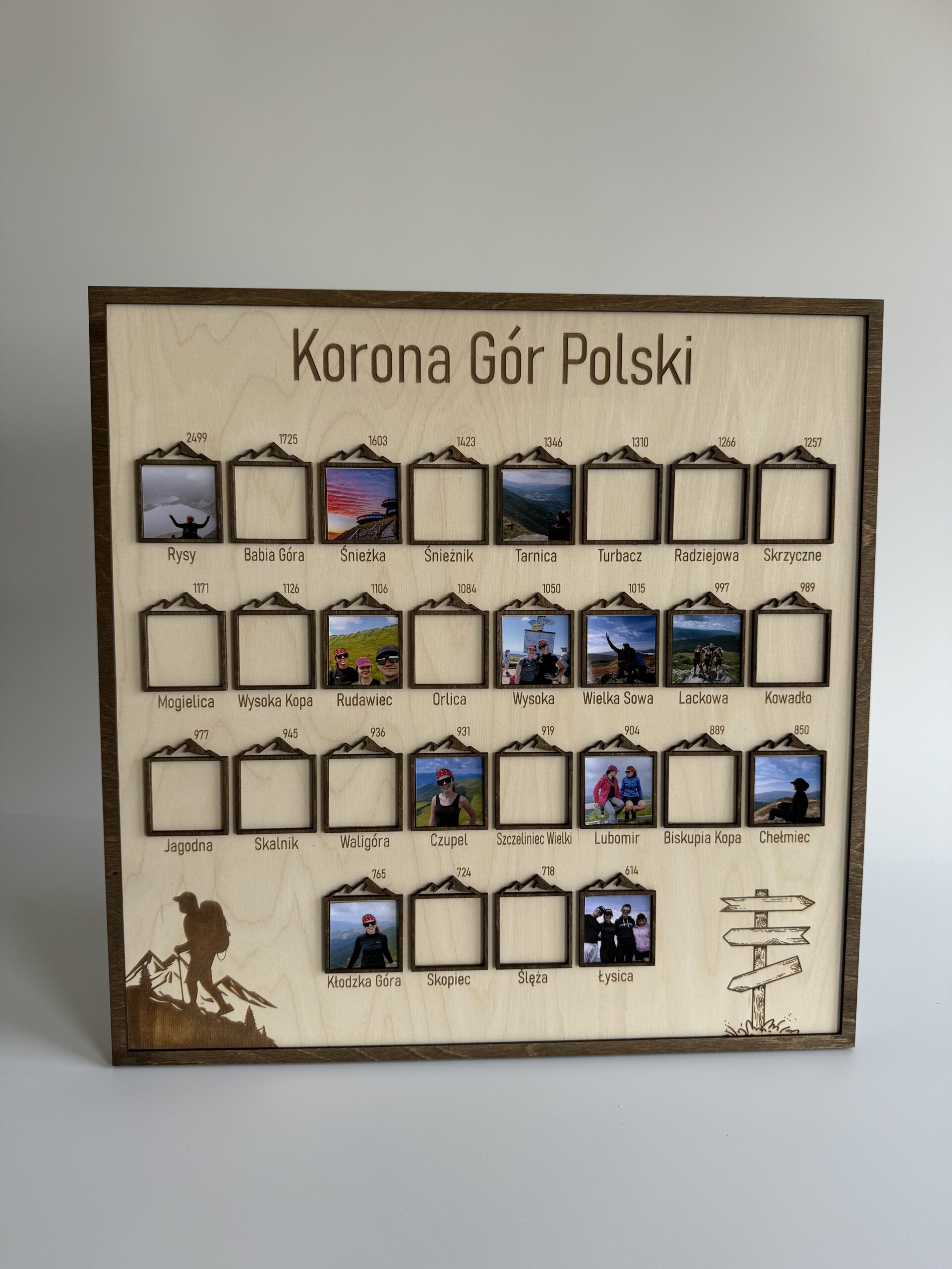 Ramka na zdjęcia zawiera listę 28 szczytów, które tworzą Koronę Gór Polski. Każdy z tych szczytów to wyjątkowe wyzwanie i niezapomniana przygoda dla każdego miłośnika górskich wędrówek.
